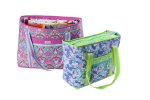 Simple to make totes in two spacious sizes; multiple pockets inside and out; zipper closure for security; great for large-scale fabrics.